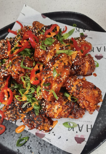 Our Korean Fried Chicken is crispier than a fallen autumn leaf and saucier than Kat Slater in a leopard print number (and each bite slaps you round the face).